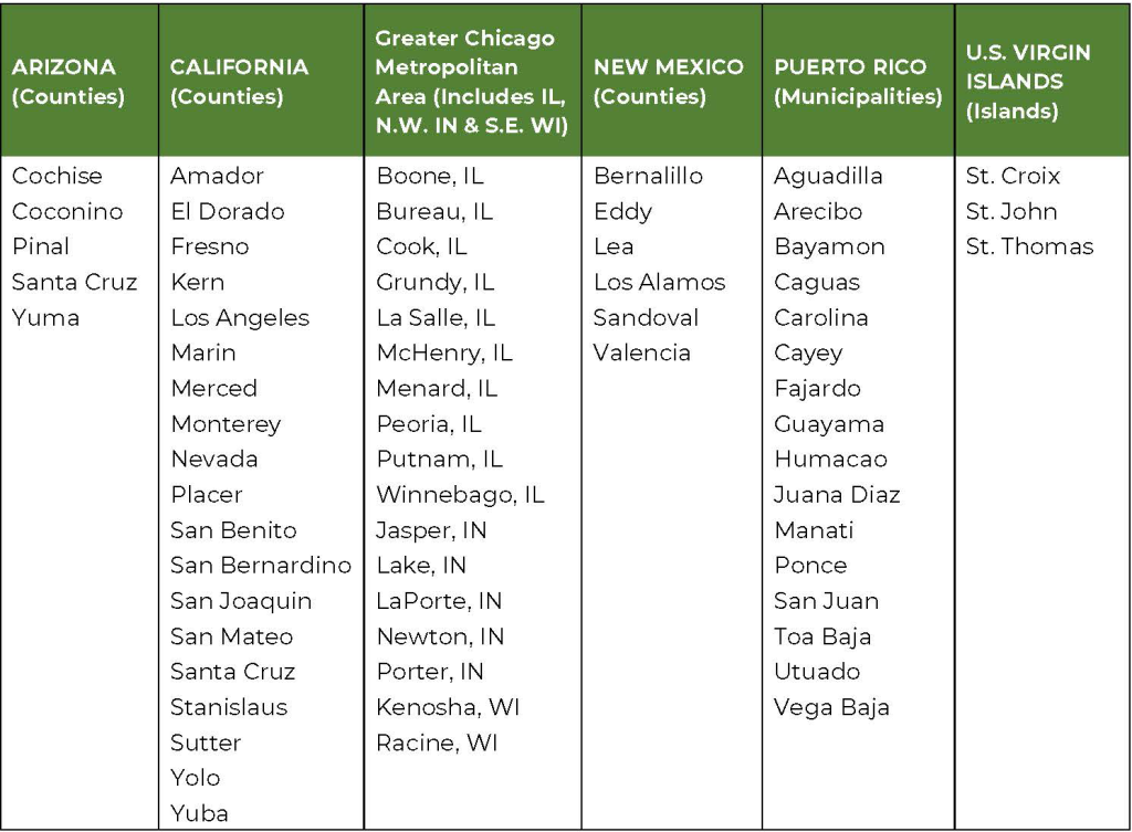 Ubicaciones elegibles: